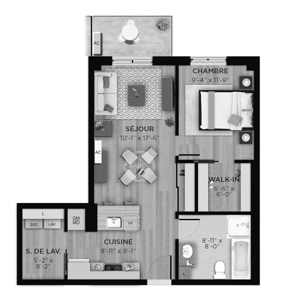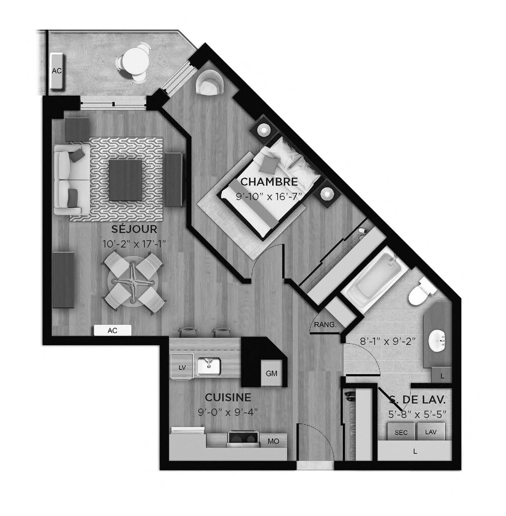 1 Bed, 1 Bath, 584 sq ftModel Gallery