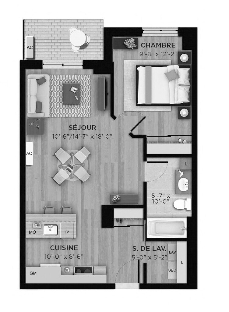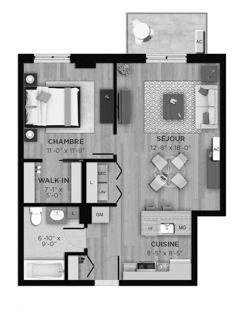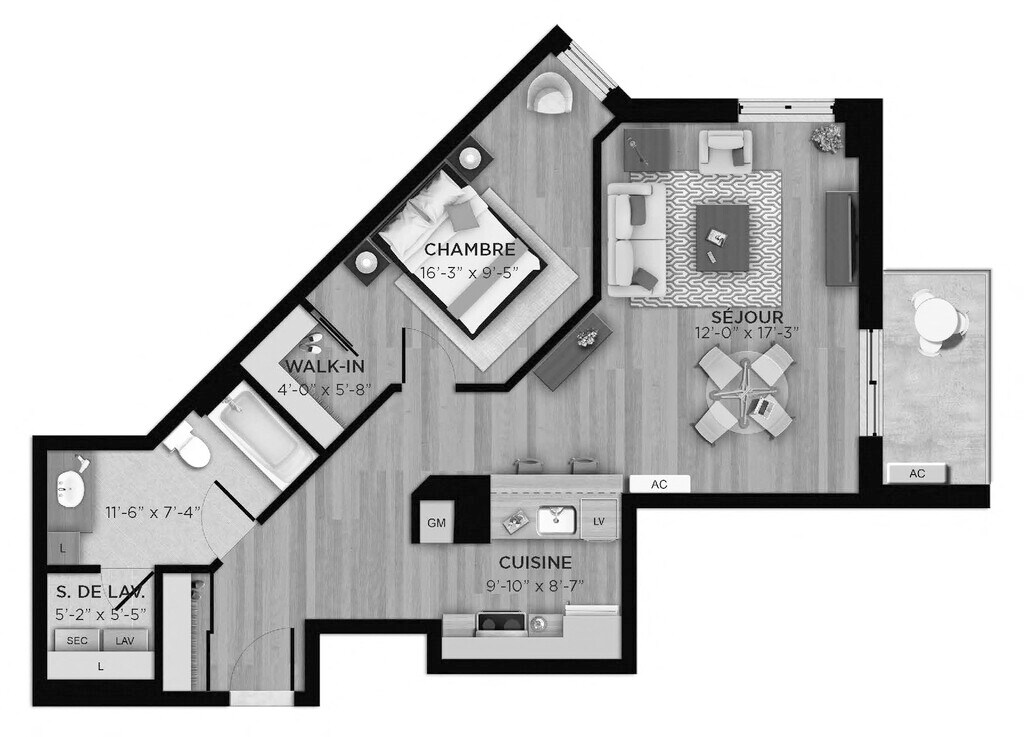 1 Bed 1 Bath L - Floorplan 1 1 Bed 1 Bath M