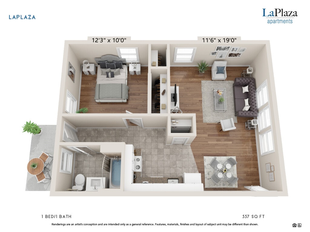 Apartment Model: LaPlazaFrom $1,1351 Bedroom, 1 Bath, 557 sq ftUnavailable![]()