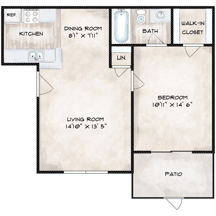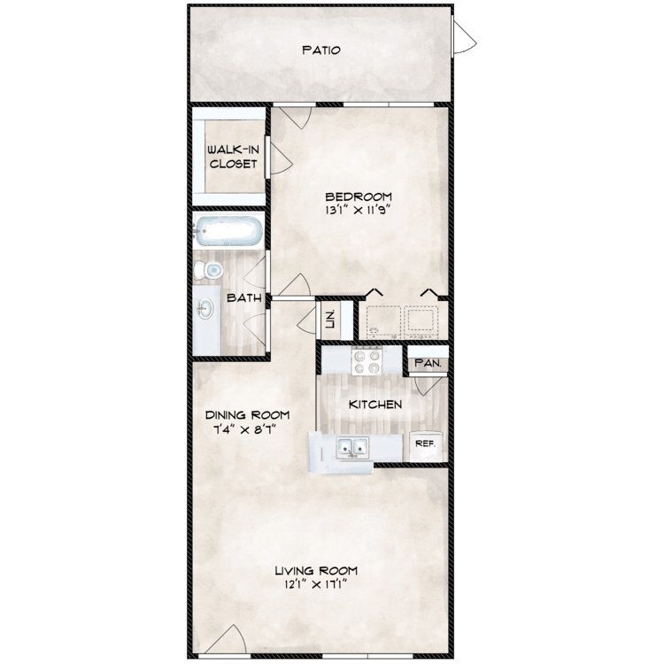 Apartment Model: BFrom $8391 Bedroom, 1 Bath, 570 sq ftAvailable Now![]()