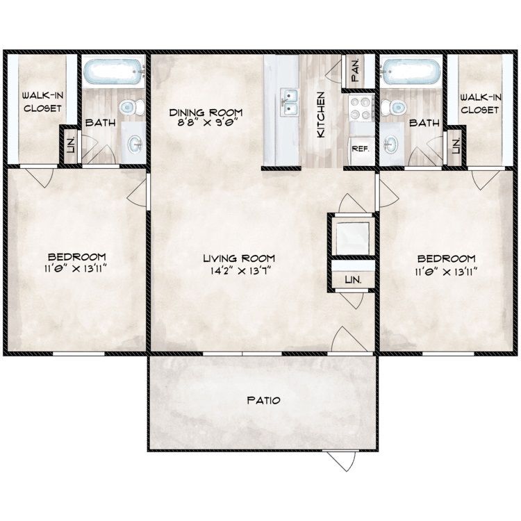 Apartment Model: E$9301 Bedroom, 1 Bath, 689 sq ftUnavailable![]()