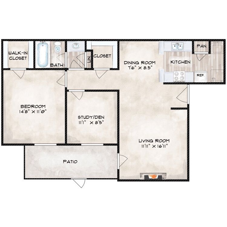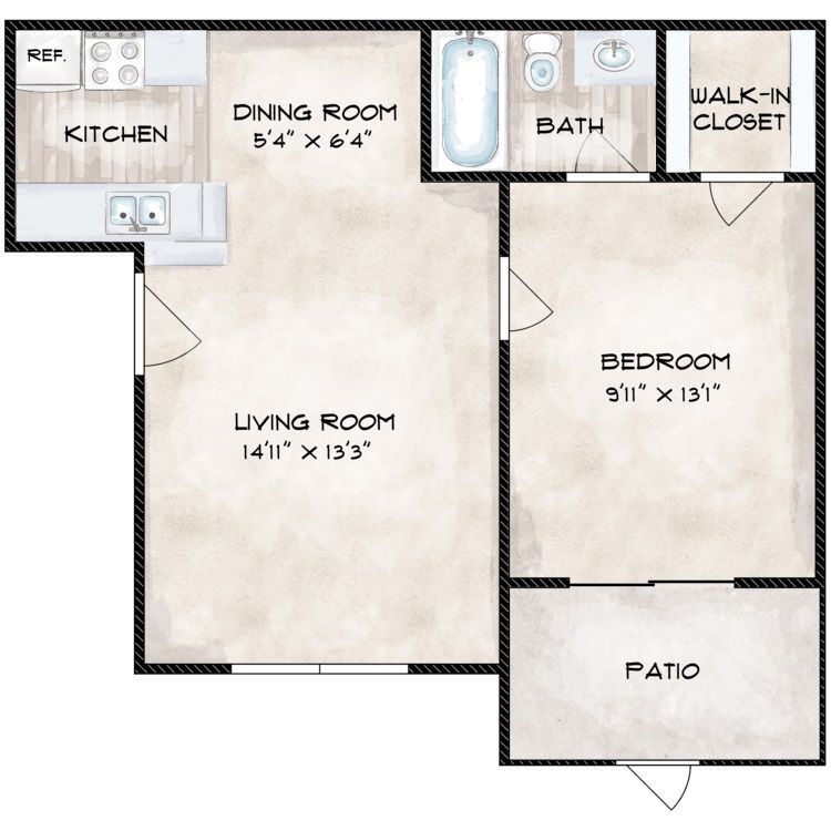 D - Floorplan 2 Apartment Unit: 1512Apartment Model: D$8691 Bedroom, 1 Bath, 650 sq ftAvailable NowFloorplan H