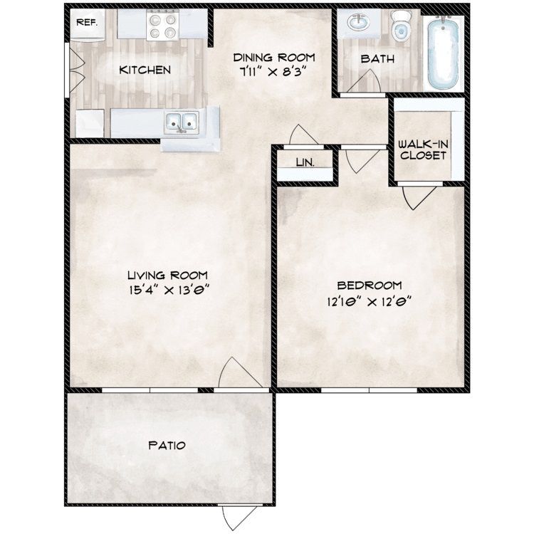 1 Bed, 1 Bath, 615 sq ftAvailable NowModel Gallery