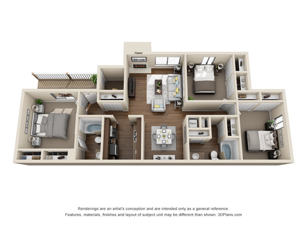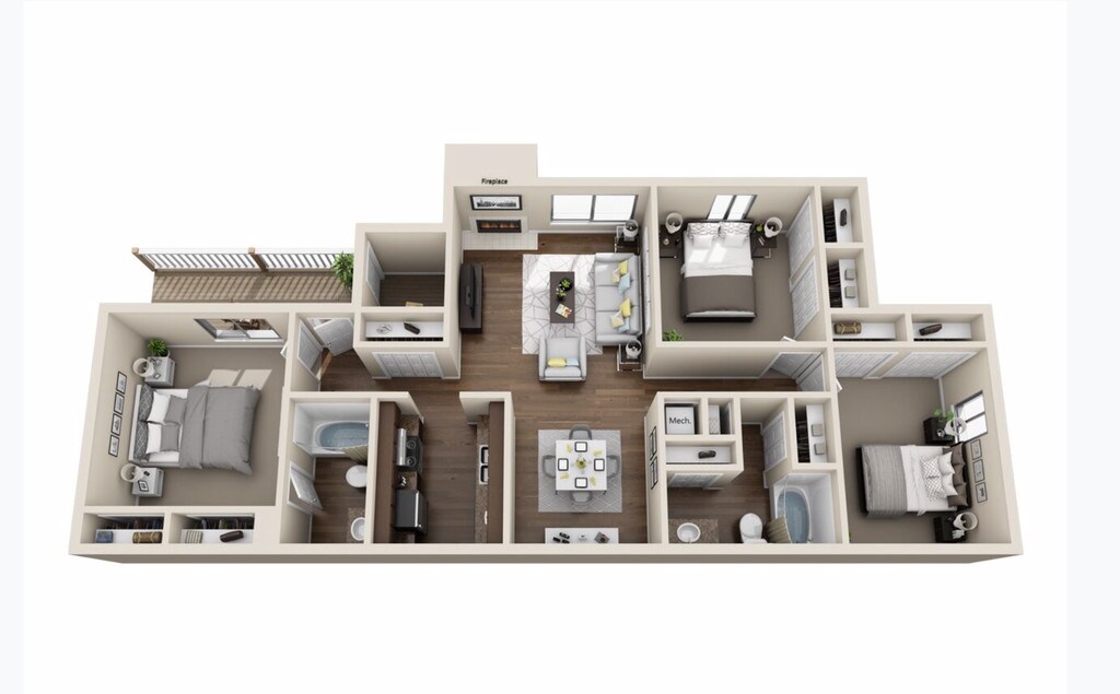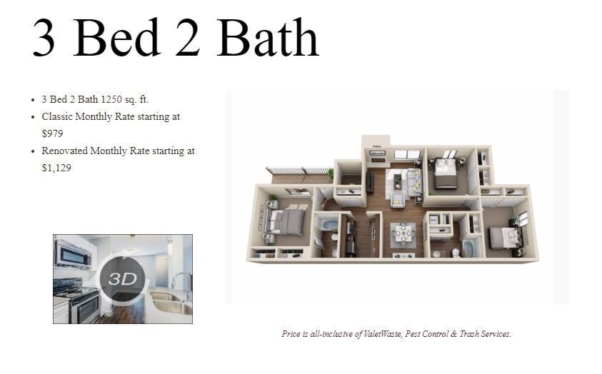 Apartment Model: 3 BedroomFrom $1,0553 Bedroom, 2 Bath, 1250 sq ftAvailable January 14, 2026![]()