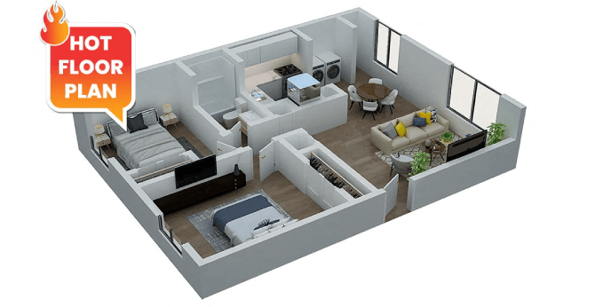 Apartment Model: WashingtonFrom $9671 Bedroom, 1 Bath, 702-730 sq ftAvailable Now![]()