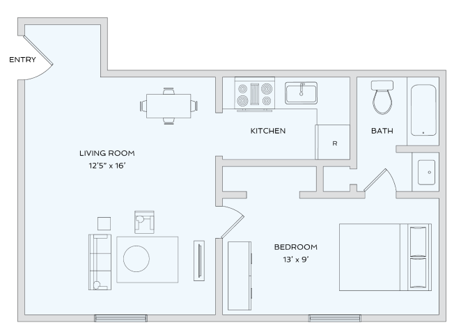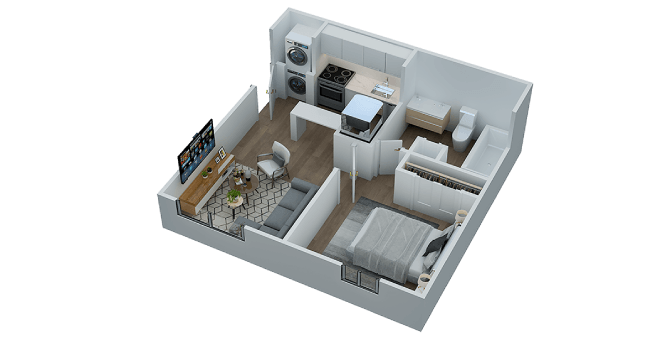 Studio, 1 Bath, 469-483 sq ftAvailable NowModel Gallery