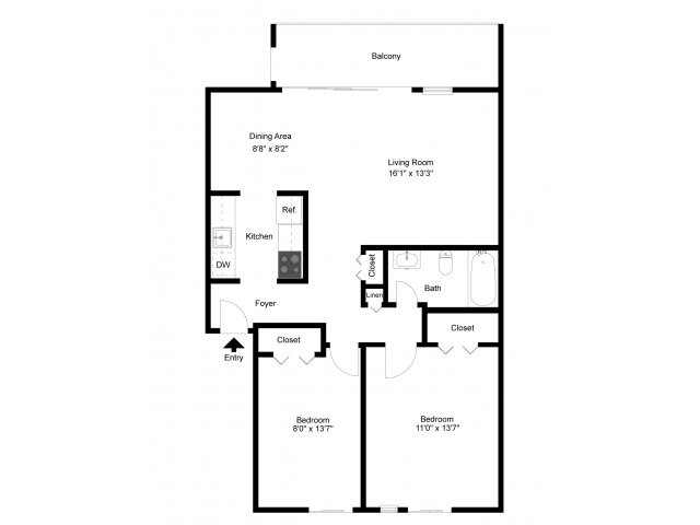 2 Beds, 1 Bath, 796 sq ftAvailable NowModel Gallery