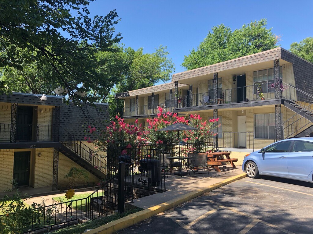 Adorable apartment complex by a scenic lake near the heart of Fort Worth. Only 4 blocks from Central Market and associated retail. Less than 4 blocks from I-30, Camp Bowie, and Hulen. Get to downtown in less than 10 minutes! Unit has spacious floor plan with two walk-in closets off of large bedroom (12'x14'). Air conditioning blows cold, brand new carpet, and fresh paint. Windows in dining area, den, and bedroom are large and allow for lots of natural light with views of courtyard, forest, and/or lake. The lake has newly constructed jogging trails and pedestrian lighting around. New property updates include new roof and sewer lines. Mandatory additional $105 fee to cover Electric, Gas, Water, Trash Removal, and Sewer. Amenities: New carpet in living area and bedroom Large walk-in closets Large windows Lake view En-suite bathroom All utilities payed Walking distance to many points of interest Non-refundable application fee: $50