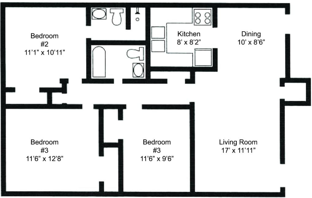 Apartment Model: Three Bedroom GardenFrom $1,3253 Bedroom, 2 Bath, 1050 sq ftAvailable October 24, 2025Three Bedroom Garden - Floorplan 1