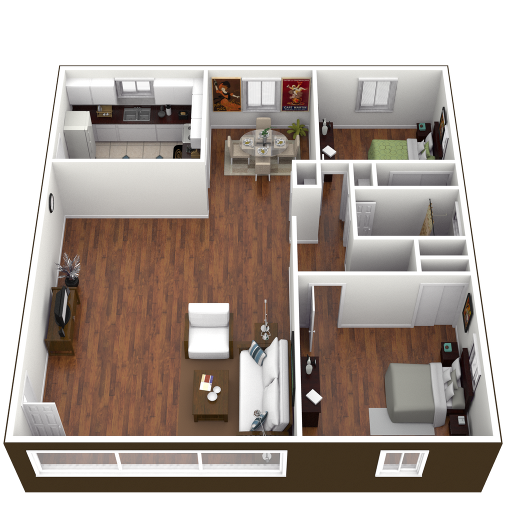 2 Beds, 1 Bath, 950 sq ftModel Gallery