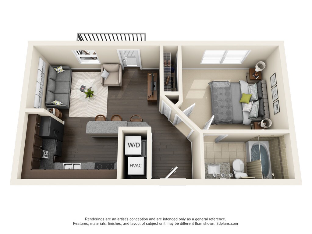 1 Bed, 1 Bath, 634 sq ftAvailable January 7, 2026Model Gallery