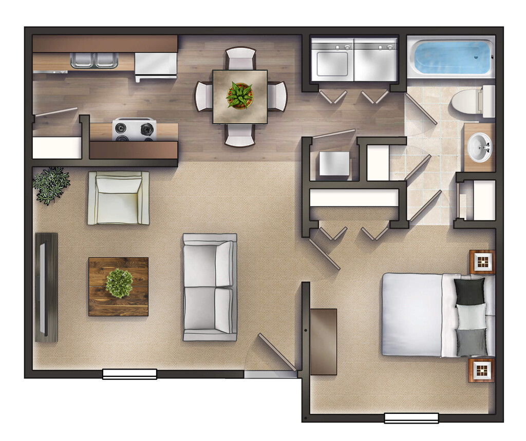 1 Bed, 1 Bath, 658 sq ftModel Gallery