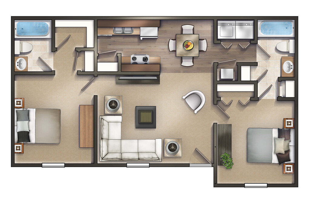 2 Beds, 2 Baths, 916 sq ftModel Gallery