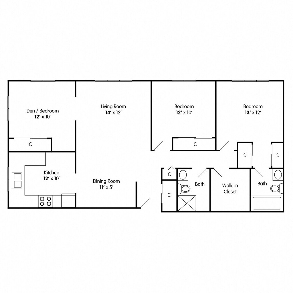 One Bedroom Apartment with Den - Floorplan 2 Apartment Unit: 00322Apartment Model: One Bedroom Apartment with Den$1,2731 Bedroom, 1.5 Bath, 910 sq ftAvailable NowOne Bedroom Apartment with Den.