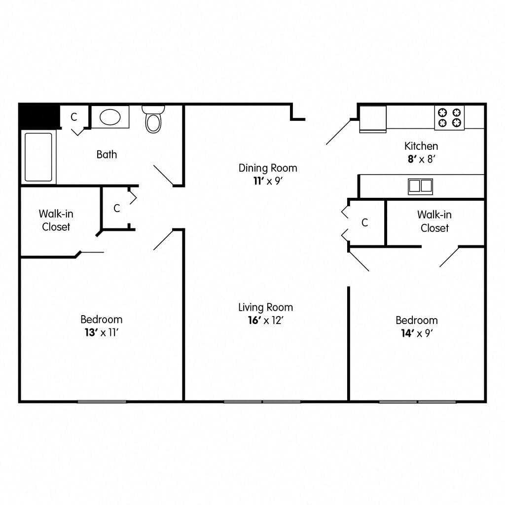 .Two Bedroom Apartment - Floorplan 1 ![]()