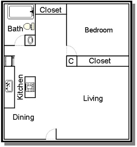 Apartment Model: 1X1 600-7001 Bedroom, 1 Bath, 600-750 sq ftUnavailable1X1 600-700 - Floorplan 1 2 Bedrooms