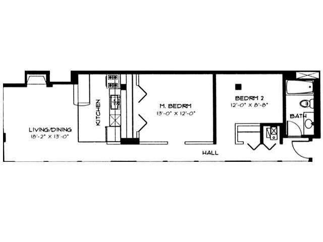 Apartment Model: 2 BR Loft2 Bedroom, 1 Bath, 961 sq ftUnavailableFloorplansPhotos![]()