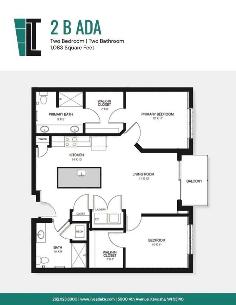 Lake Terrace Apartment in Downtown Kenosha! offers 2 Bedroom apartments starting from $2,145 and having 1,083–1,224 sq ft. Here is the current pricing and availability: