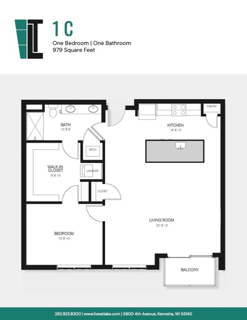 1C - Image 10 Apartment Unit: 501Apartment Model: 1C$1,9751 Bedroom, 1 Bath, 979 sq ftAvailable December 5, 20252 Bedrooms