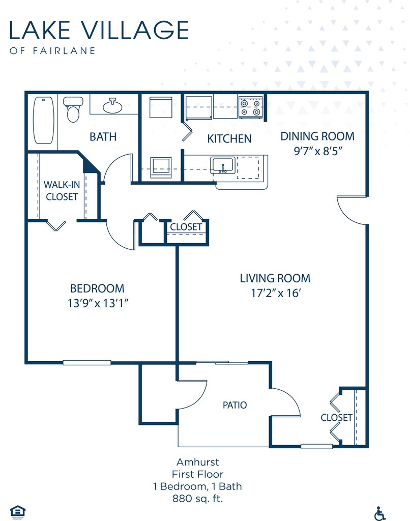 Apartment Model: Amhurst 1st Floor$1,3641 Bedroom, 1 Bath, 880 sq ftAvailable November 17, 2025FloorplansPhotos![]()