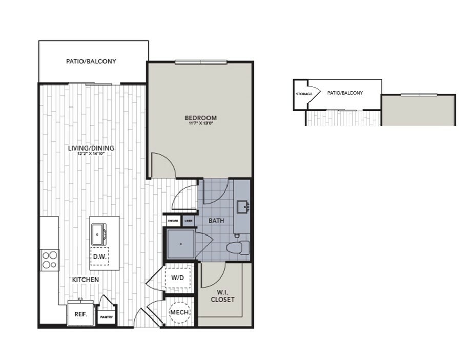 Apartment Model: A1 - One Bedroom, One Bathroom1 Bedroom, 1 Bath, 713 sq ftUnavailableA1 - One Bedroom, One Bathroom - Floorplan 1 A1.3 - One Bedroom, One Bathroom