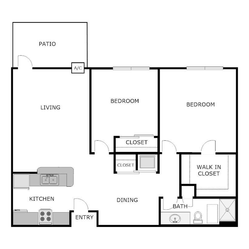 Apartment Model: 2 Bedroom 1 BathroomFrom $9052 Bedroom, 1 Bath, 904-986 sq ftUnavailable![]()