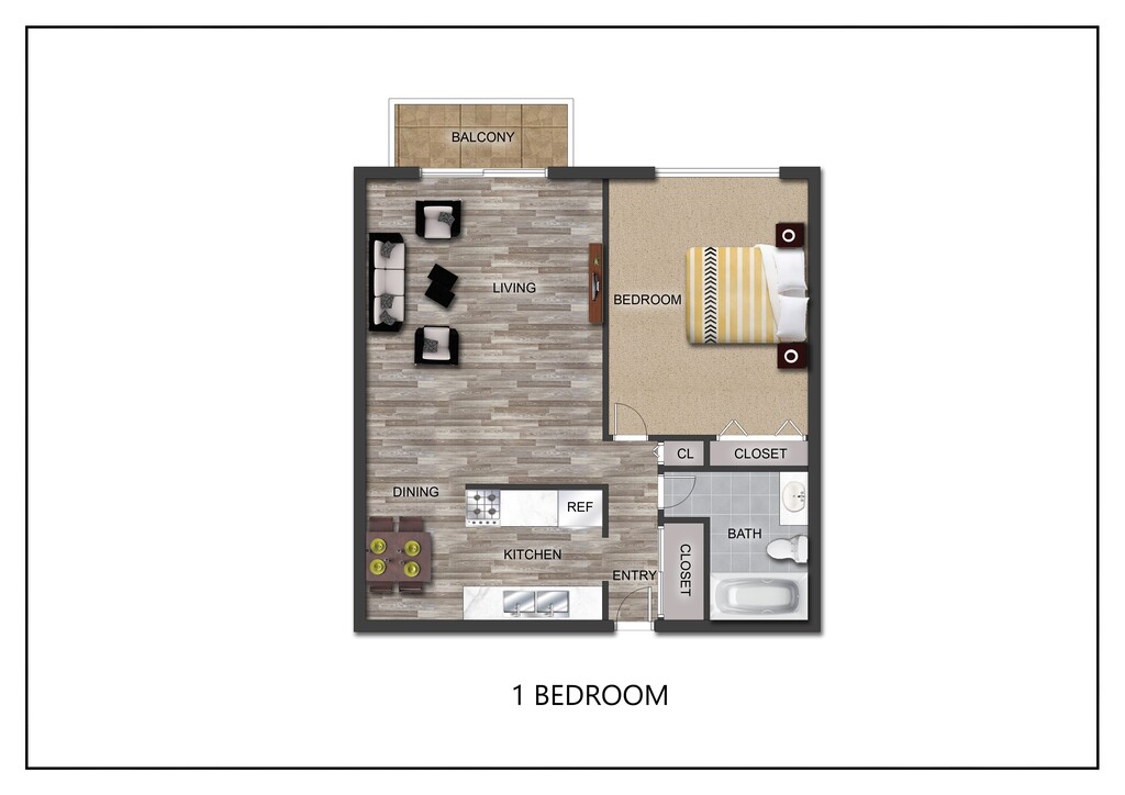 Apartment Model: 1 Bedroom1 Bedroom, 1 Bath, 650 sq ftUnavailable![]() - 1 Bedroom - Floorplan 1