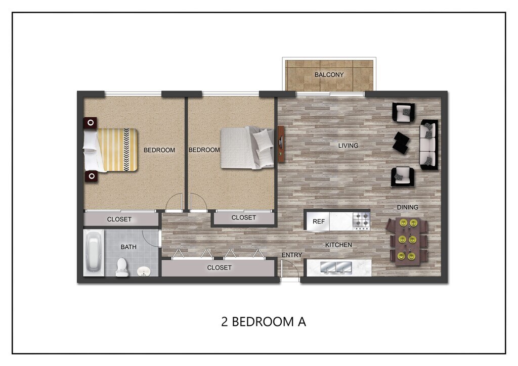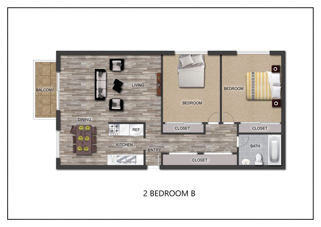 - 2 Bedrooms- 2 Bedroom2 Beds, 1 Bath, 800-1030 sq ft- Model Gallery- Floorplans- Availability Details- Availability Date - Unit - Sq Ft - Unavailable - 2 Bedroom - 800-1030 sq ft - Model Amenities and Features- Features- High Speed Internet Access