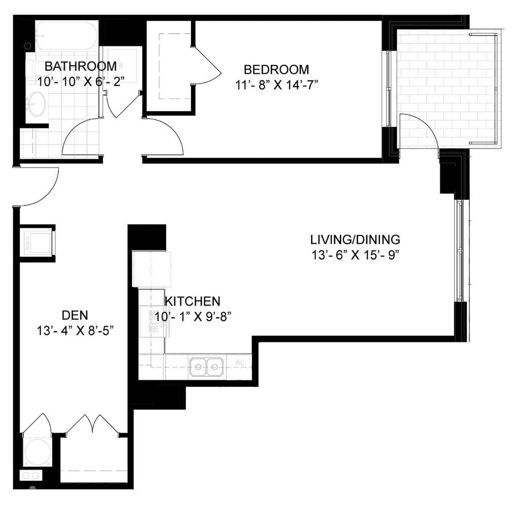 Unit: 0306 - Image 1 1 Bed/1 Bath Den-B02