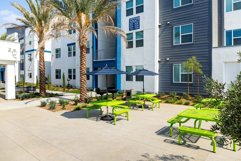 Lakeland Apartments in Santa Fe Springs, CA, is a vibrant community where modern living meets thoughtful design. Our affordable housing options include spacious two- and three-bedroom apartments, designed with sleek black appliances and wood plank vinyl flooring. Community amenities include a fully equipped fitness center, playground, and clubhouse featuring a demonstration kitchen overlooking outdoor spaces. Enjoy a home that fits your lifestyle and budget at Lakeland Apartments.