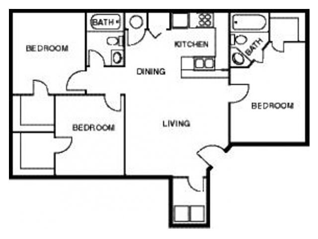 Apartment Model: 32AFrom $1,4503 Bedroom, 2 Bath, 1143 sq ftAvailable NowFloorplansPhotos![]()