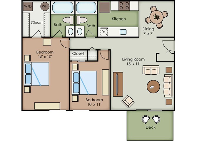 2 Beds, 2 Baths, 970 sq ftAvailable NowModel Gallery