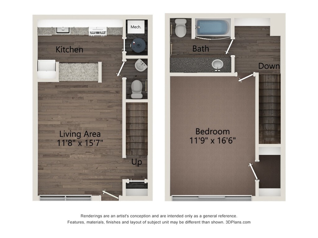 Apartment Model: 1x1.5 TH$1,0501 Bedroom, 1.5 Bath, 715 sq ftUnavailable![]() - 1x1.5 TH - Floorplan 1
