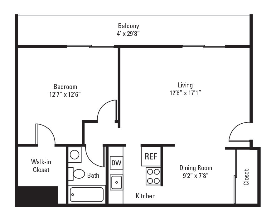 One Bedroom-690 sqft - Floorplan 1 ![]()