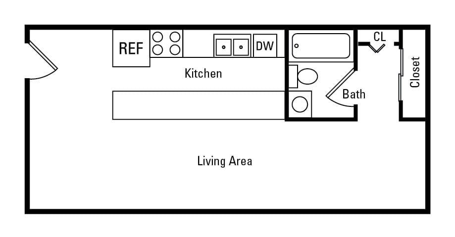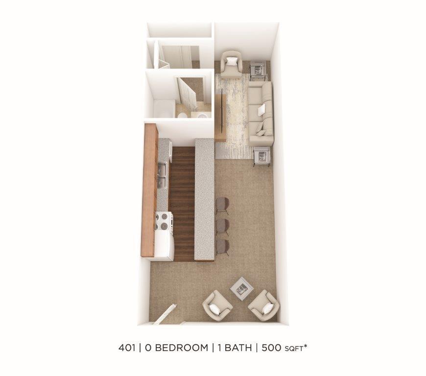 Studio, 1 Bath, 500 sq ftAvailable NowModel Gallery