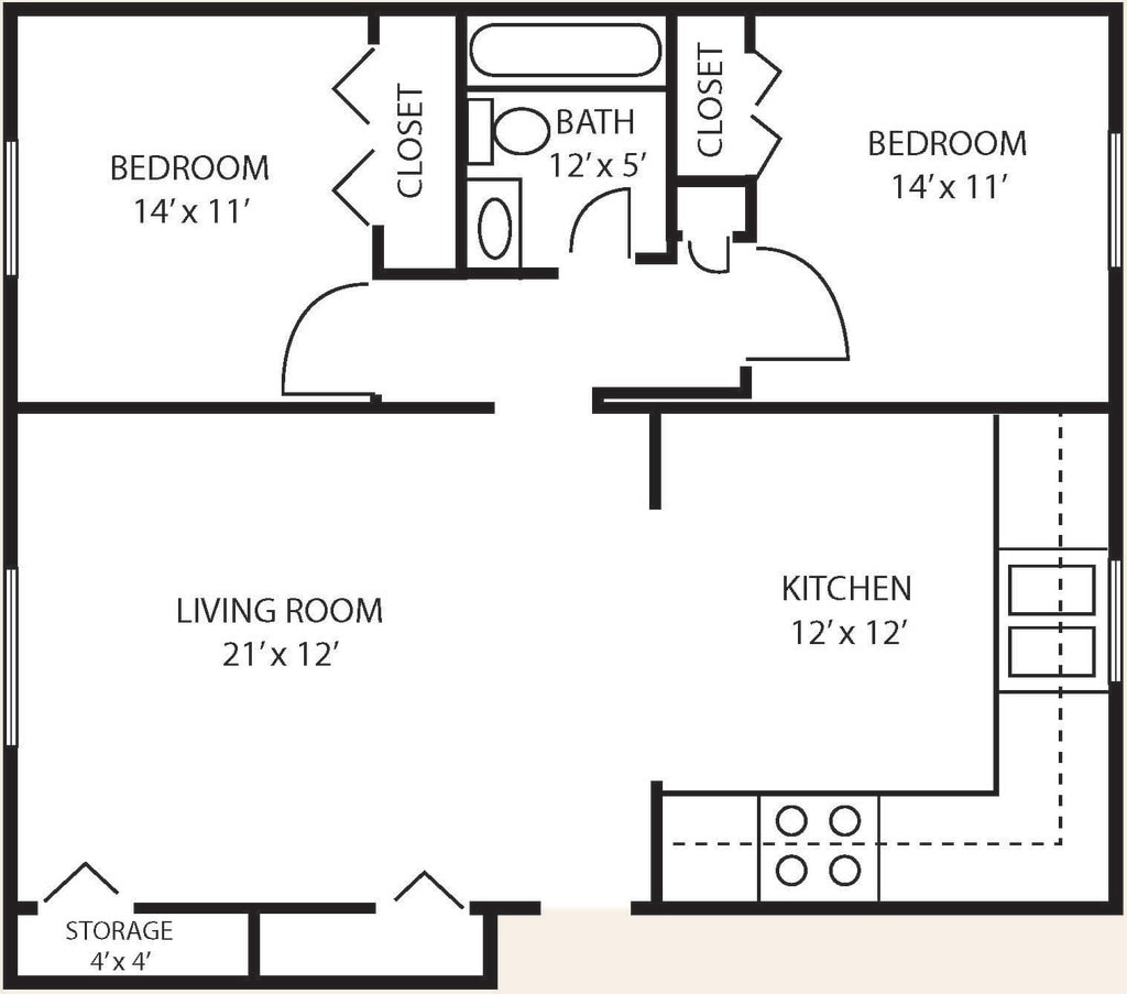 2 Beds, 1 Bath, 950 sq ftAvailable NowModel Gallery