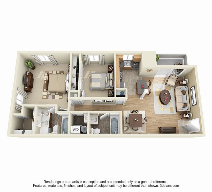 2 Beds, 2 Baths, 834 sq ftAvailable NowModel Gallery