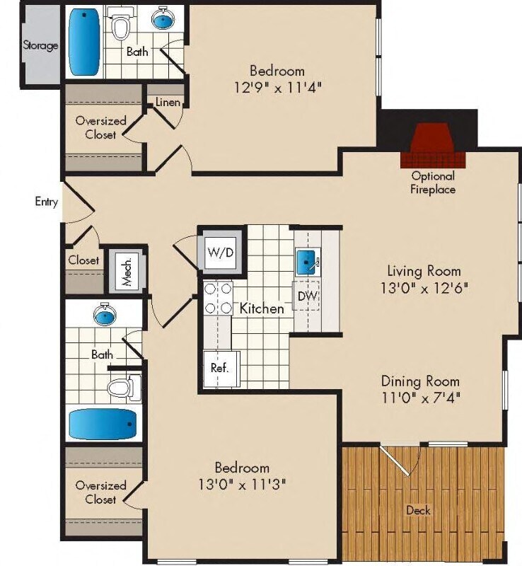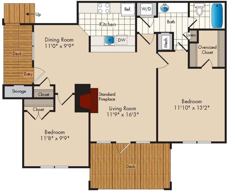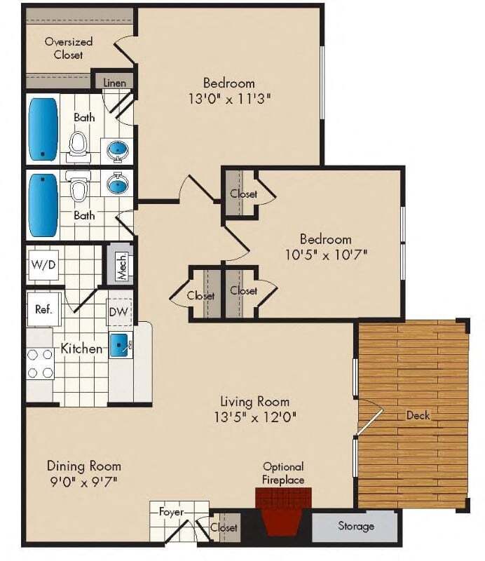2 Beds, 2 Baths, 1018 sq ftAvailable NowLargest 2 BedroomThis is the largest 2 Bedroom at this PropertyModel Gallery