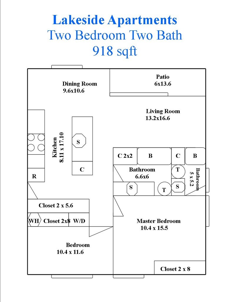 Lakeside Apartments offers 2 Bedroom apartments starting from $1,400 and having 918 sq ft. Here is the current pricing and availability: