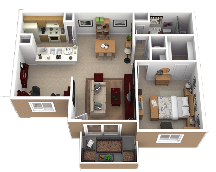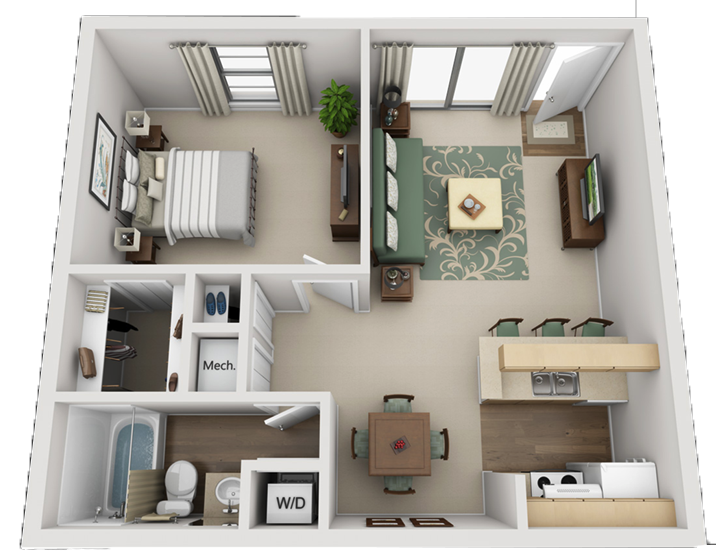 1 Bed, 1 Bath, 615 sq ftAvailable NowModel Gallery