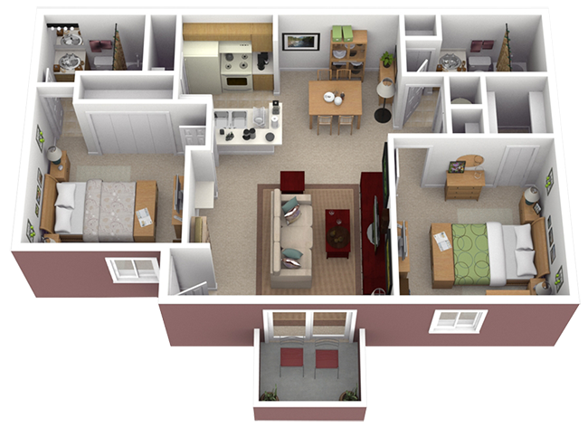 2 Beds, 2 Baths, 810 sq ftAvailable NowModel Gallery