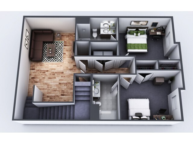 Spruce - Floorplan 3 Apartment Unit: StandardApartment Model: Spruce$9852 Bedroom, 2 Bath, 934 sq ftAvailable NowApartment Unit: StandardApartment Model: Spruce$9852 Bedroom, 2 Bath, 934 sq ftAvailable August 21, 20264 Bedrooms