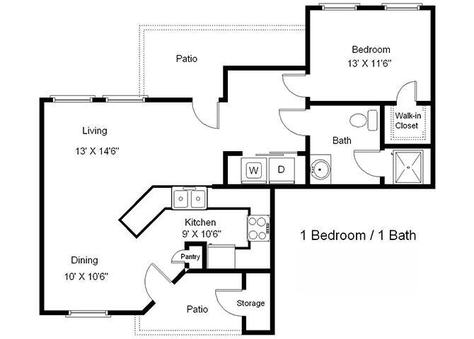 One Bedroom B - Floorplan 1 2 Bedrooms