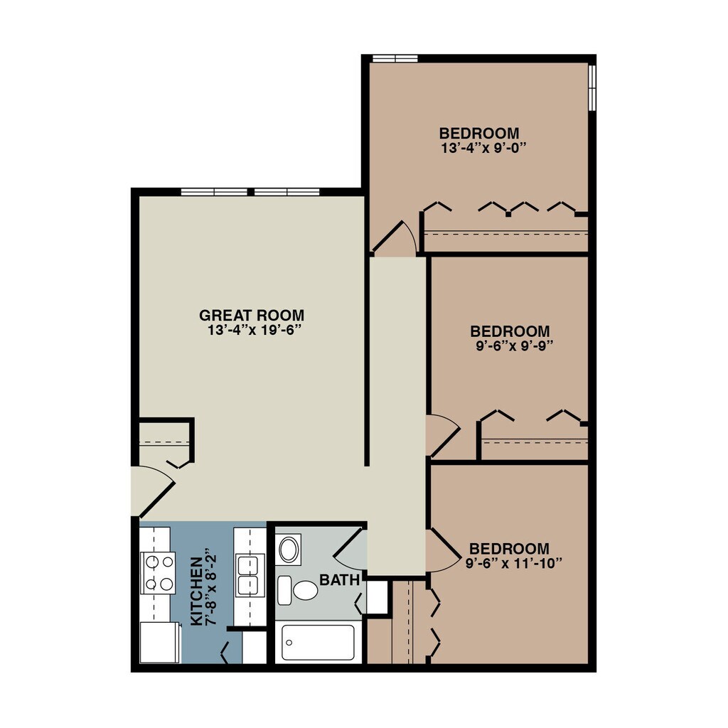 3 Beds, 1 Bath, 875 sq ftPlus FeesAvailable NowModel Gallery