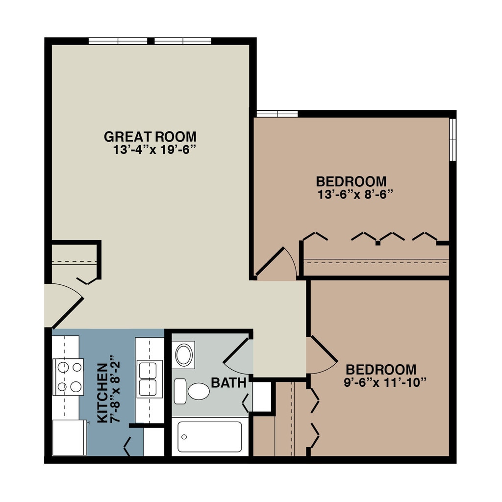 2 Beds, 1 Bath, 699 sq ftPlus FeesAvailable NowModel Gallery