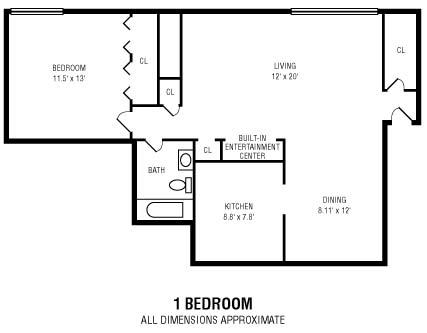 1Bedroom 1Bathroom - Floorplan 1 ![]()