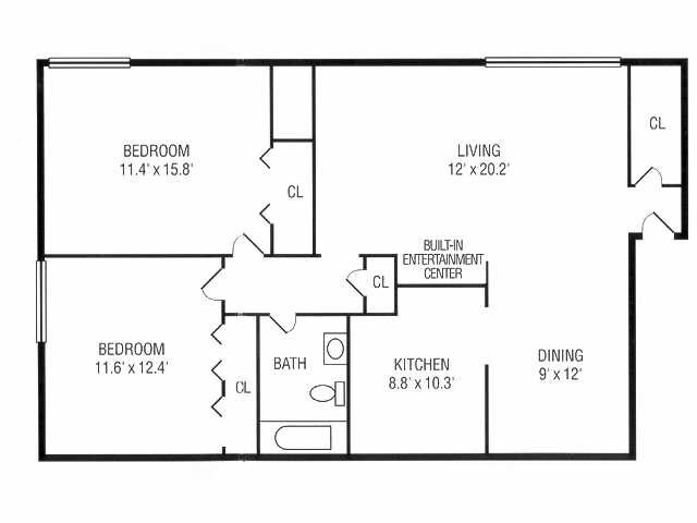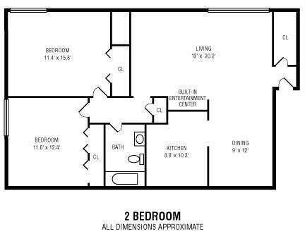 Apartment Model: 2Bedroom 1Bathroom2 Bedroom, 1 Bath, 820 sq ftAvailable Now![]()