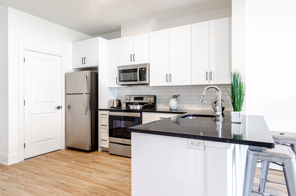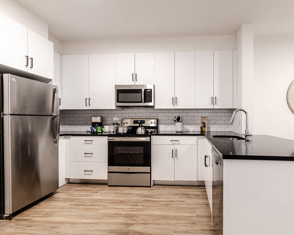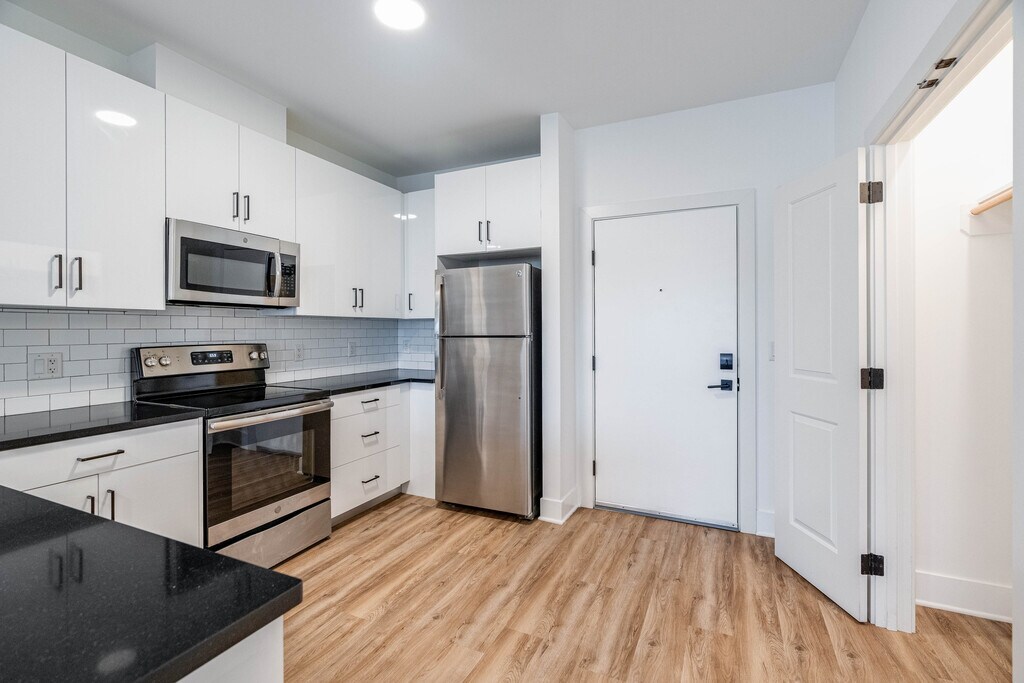 This beautiful, spacious apartment features: ? Modern kitchens with GE stainless steel appliances, undermount sinks, stone countertops and tiled backsplashes Armstrong luxury flooring Contemporary white kitchen cabinetry Upscale bathrooms with large format tile, cultured marble vanity countertops, chrome faucets with sprayers, medicine cabinets etc. In-home, front-loading washers and dryers Large Windows and High Ceilings Keyless entry Assigned Parking On site Storage Units available Gym and Business center building amenities Grab this unit before its gone!