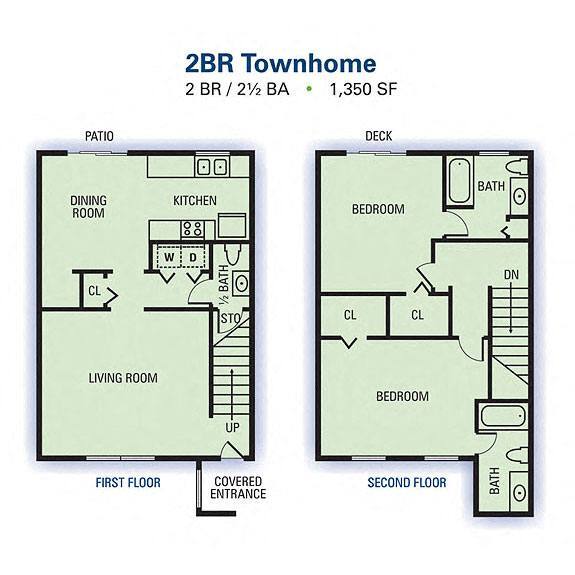 Apartment Model: Two Bedroom TownhomeFrom $1,1942 Bedroom, 2.5 Bath, 1350 sq ftAvailable Now![]()