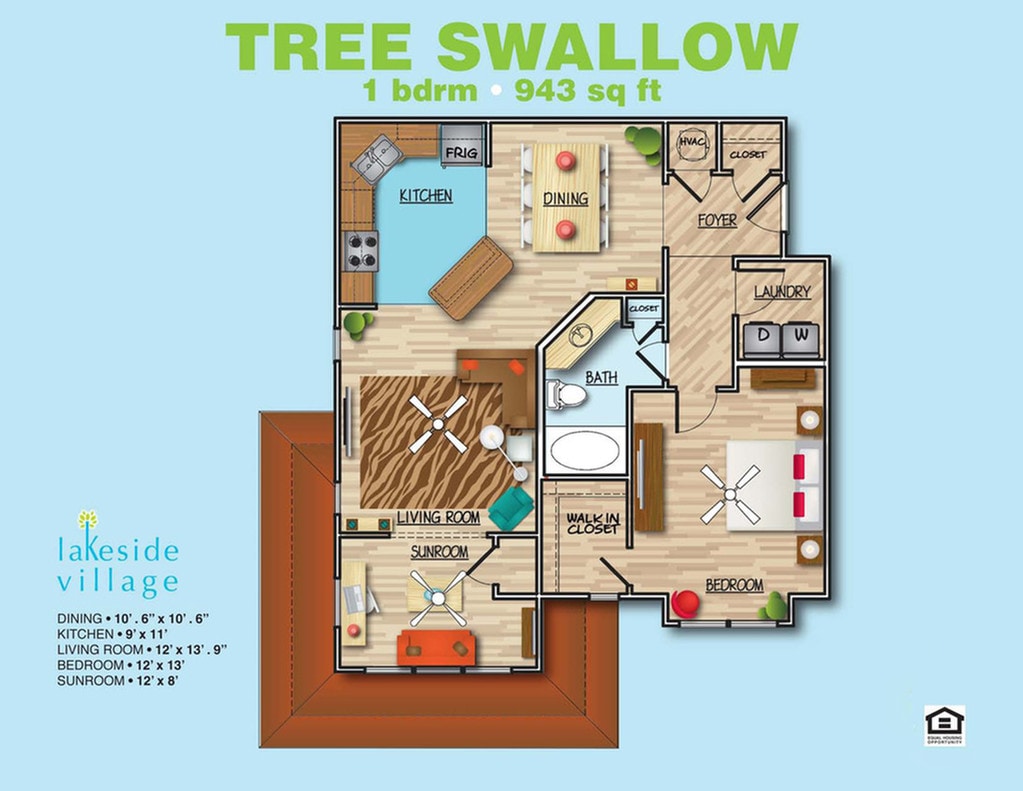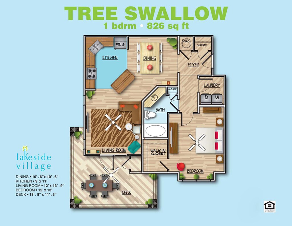 Apartment Model: Tree Swallow CCall For Rates1 Bedroom, 1 Bath, 943 sq ftUnavailableTree Swallow C - Floorplan 1 Lily Pad